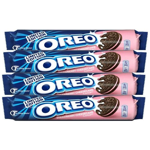 Oreo Печенье шоколадное, Клубничный чизкейк, Флоу-пак, 4х154гр.