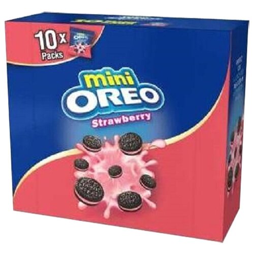Печенье Oreo Mini Strawberry / коробка Орео Мини с клубничным кремом 10шт по 20,4г в индивидуальных упаковках