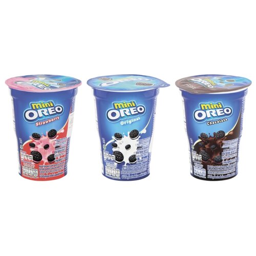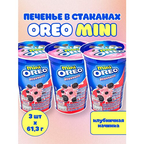 Печенье Oreo mini в стакане 61,3г х 3шт Клубника, Ваниль, Шоколад / Strawberry, Vanilla, Chocolate