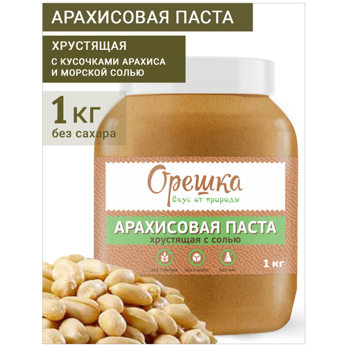 Арахисовая паста орешка хрустящая соленая 1 кг. (ореховая натуральная с кусочками и морской солью)