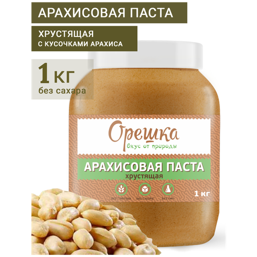 Арахисовая паста орешка хрустящая без добавок 1 кг. (ореховая натуральная без сахара с кусочками)
