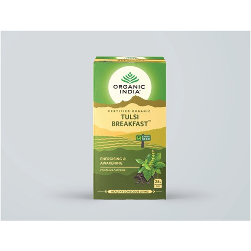 Индийский чайный напиток травяной, т.м. ORGANIC INDIA, Тулси Завтрак (Базилик и Черный чай ассам), по 25 пакетиков в пачке