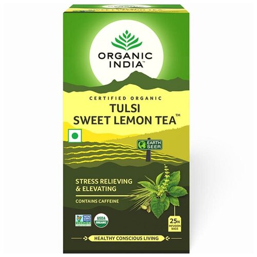Индийский чайный напиток травяной, т.м. ORGANIC INDIA, Тулси (Базилик) Чай со сладким лимоном, по 25 пакетиков в пачке