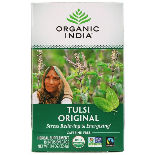 Индийский чайный напиток травяной, т.м. ORGANIC INDIA, Тулси (Базилик) и Зеленый чай, по 25 пакетиков в пачке