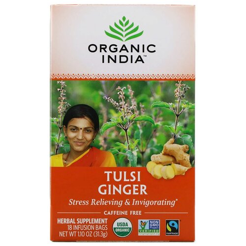 Индийский чайный напиток травяной, т.м. ORGANIC INDIA, Тулси Имбирь, по 25 пакетиков в пачке