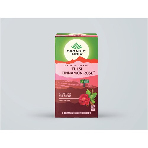 Индийский чайный напиток травяной, т.м. ORGANIC INDIA, Тулси (Базилик) Корица Роза, по 25 пакетиков в пачке