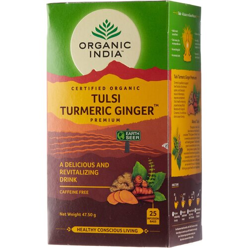 Индийский чайный напиток травяной, т.м. ORGANIC INDIA, Тулси (Базилик) Куркума Имбирь, по 25 пакетиков в пачке