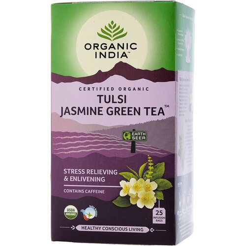 Чай Organic India Tulsi Jasmine, успокаивающий, зеленый, 25 пакетиков