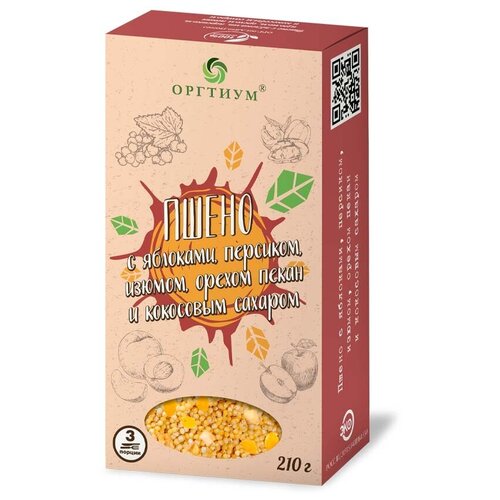Пшено с яблоками, персиком, изюмом, орехом пекан и кокосовым сахаром, 210г., Оргтиум