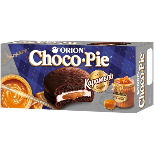 Печенье ORION "Choco Pie Dark Caramel" темный шоколад, карамельное, 360 г (12 штук х 30 г), О0000013514