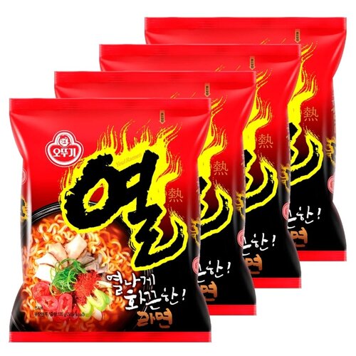 Лапша быстрого приготовления Ёль Рамён Ottogi со вкусом острого перца, пачка 120 г х 4 шт