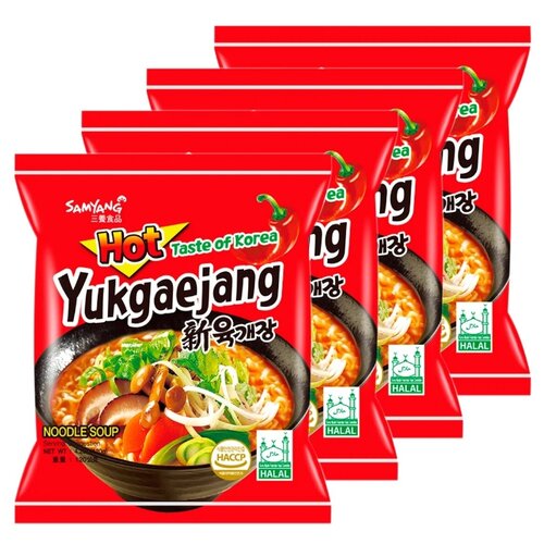 Лапша быстрого приготовления Юкедзянг острая со вкусом говядины Samyang, пачка 120 г х 4 шт