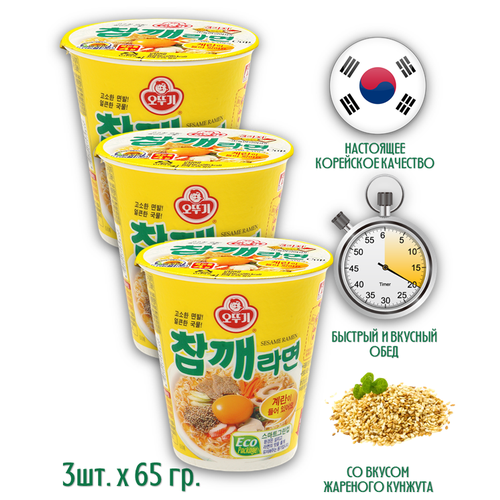Лапша быстрого приготовления Чамке Рамён со вкусом жареного кунжута Ottogi, чашка 110 г х 12 шт