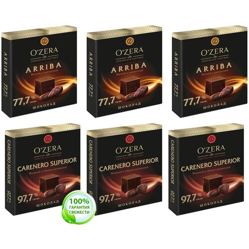Шоколадный набор — шоколад горький OZera — ARRIBA 77,7% + Carenero Superior-97,7 % cacao, озерский сувенир 6 шт. по 90 грамм