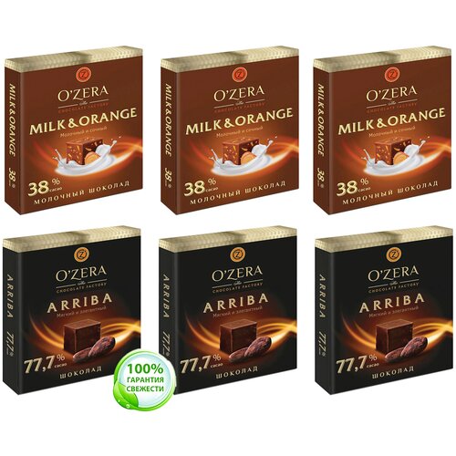 Шоколадный набор-шоколад OZERA — ARRIBA горький 77,7% + молочный с апельсином OZera Milk & Orange 38 % cacao, озерский сувенир 6 шт. по 90 грамм