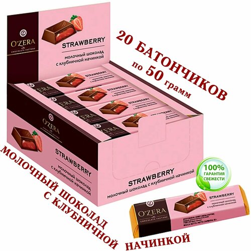 Шоколадный батончик"OZERA","Strawberry"(КDV), из молочного шоколада с желейной начинкой, обогащенной натуральным клубничным соком-20*50 грамм
