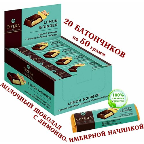 Шоколадный батончик"OZERA","Lemon & Ginger" (КDV), с желейной начинкой, с соком лимона с добавлением сладковато-жгучего имбиря- 20*50 гр
