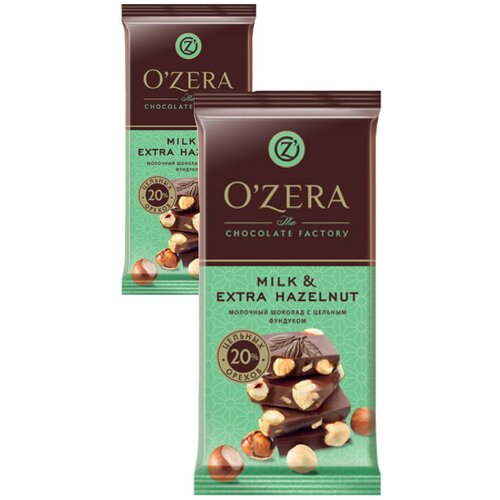 «OZera», шоколад молочный с цельным фундуком Milk & Extra Hazelnut, 2 упаковки по 90 г.