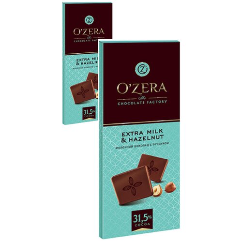 «OZera», шоколад молочный Extra milk & Hazelnut, 2 упаковки по 90 г.