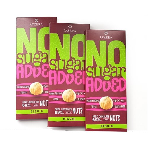 Шоколад без сахара, 69% какао, стевия, фундук и кешью, 3шт