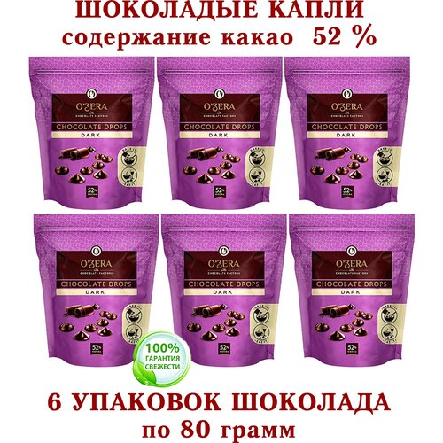 Шоколад темный OZera "Шоколадные Капли" DARK drops, "Озерский сувенир" — 6 упаковок по 80 грамм