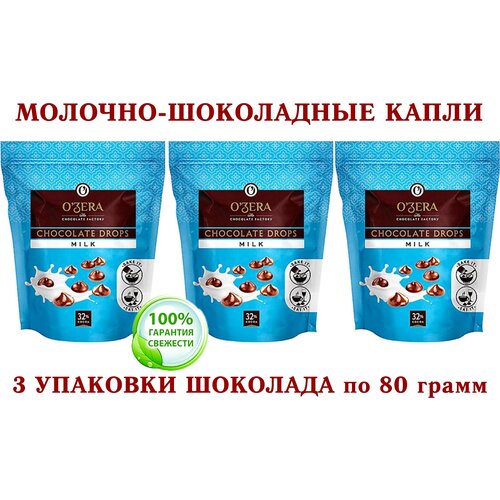 Шоколад молочный OZera "молочные капли" Milk drops, "Озерский сувенир" — 3 упаковки по 80 грамм