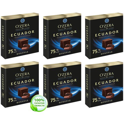 Шоколад горький OZera ECUADOR, содержание какао 75%. Озерский сувенир 6 шт. по 90 грамм