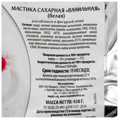 Мастика сахарная ванильная белая, 450г 5097789