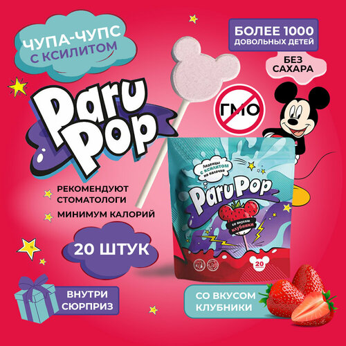 Чупа Чупс Paru Pop, леденцы без сахара с ксилитом 20 штук + подарок