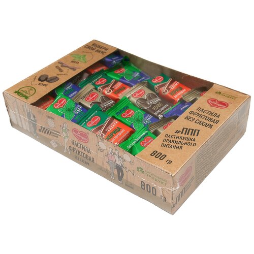 Пастила пастилушка ассорти, комплект 5 шт натуральная, фруктовая, без сахара, 800 г, коробка с окном