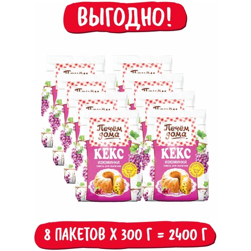 Смесь для выпечки Кекс Печем дома "Изюминка" 300 г / 8 упаковок в коробке. Русский Продукт