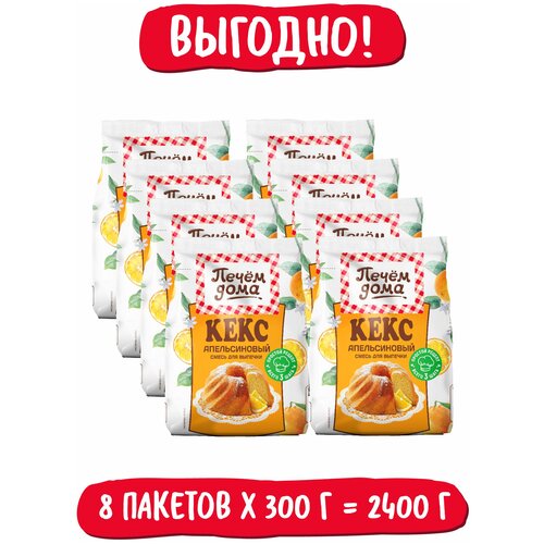 Смесь для выпечки Кекс Печем дома "Апельсиновый" 300 г / 8 упаковок в коробке. Русский Продукт