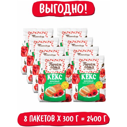 Смесь для выпечки Кекс Печем дома "Маковый" 300 г / 8 упаковок в коробке. Русский Продукт
