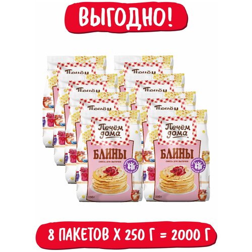 Смесь для выпечки Печем дома "Блины" 250 г / 8 упаковок в коробке