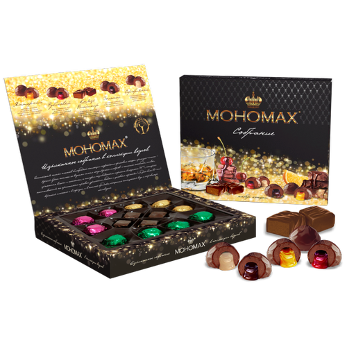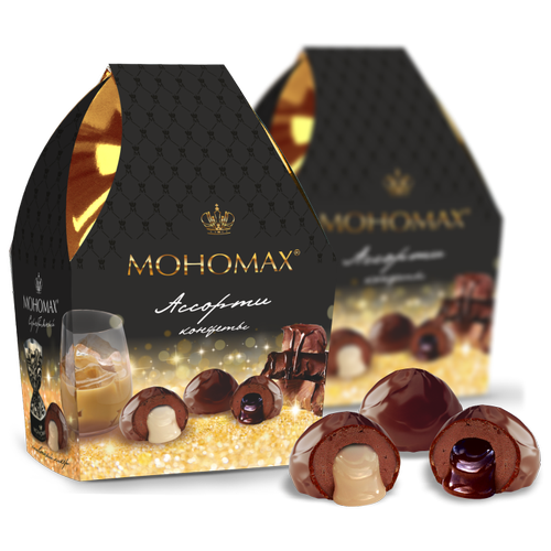 Конфеты шоколадные с алкоголем "мономах золотой, Шоколадный ликер" 200 г., в упаковке, Пермская Фабрика