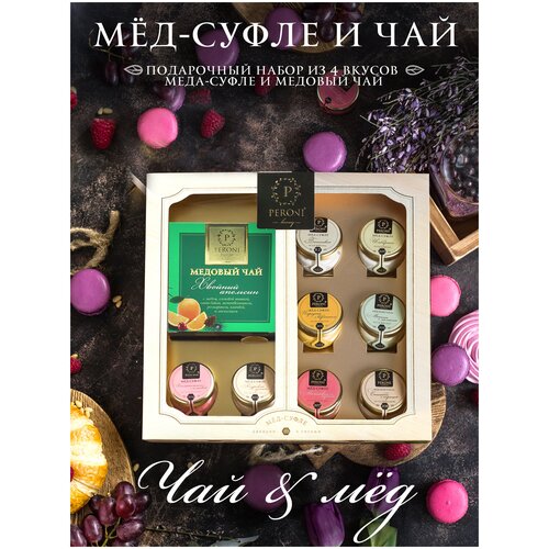 Мед суфле Подарочный набор с чаем "ЧАЙ&МЁД "Пряный глинтвейн" Крем мед продукты листовой чай