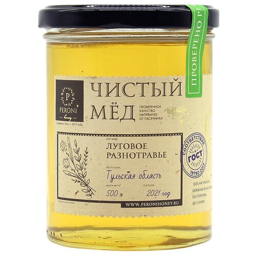 Мед Peroni Honey Луговое разнотравье, 500г. Натуральный Жидкий Цветочный мёд
