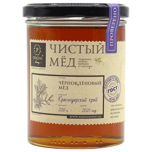 Чистый мёд Peroni Honey Чернокленовый, 500г./Жидкий мед/мед/Мёд натуральный/настоящий мед