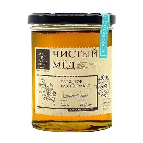 Чистый мёд Peroni Honey Таежное разнотравье, 500г./Жидкий мед/мед/Мёд натуральный/настоящий мед/алтайский мед
