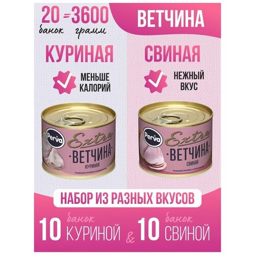 Набор консервов ветчина свиная 10 шт и ветчина куриная Perva 10 шт