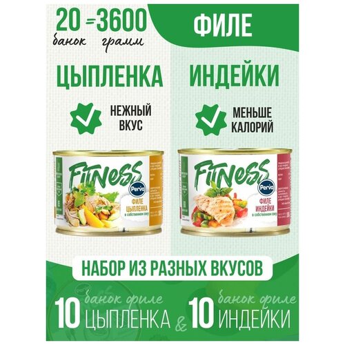 Набор диетических консервов филе индейки 10 шт+филе цыпленка Perva Fitness 10 штук