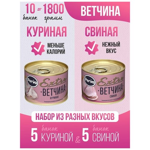 Набор консервов ветчина свиная 5 шт и ветчина куриная Perva 5 шт