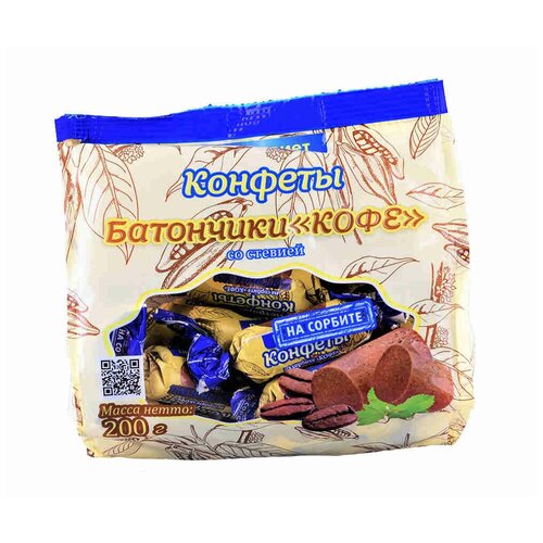 Конфеты батончики кофе со стевией на сорбите "Петродиет"