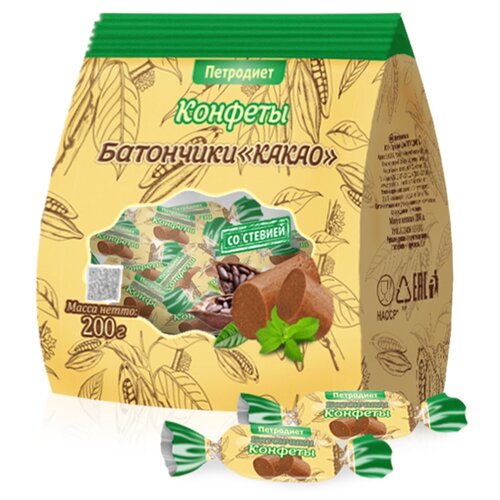 Конфеты батончики какао со стевией на фруктозе "Петродиет"