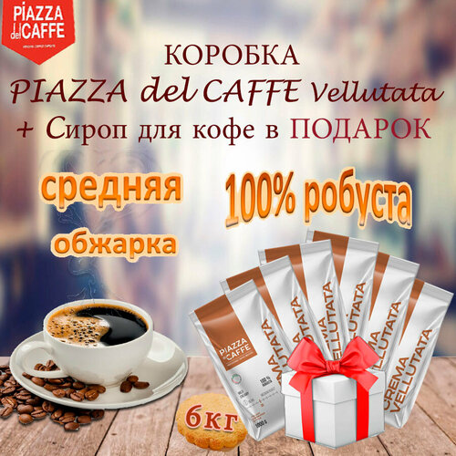 Зерновой кофе PIAZZA DEL CAFFE Crema Vellutata, пакет, 6шт / 6кг + подарок