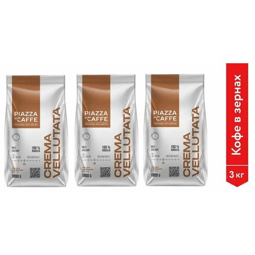 Кофе в зернах Piazza Del Caffe Crema Vellutata, 1000 гр. х 3 шт.