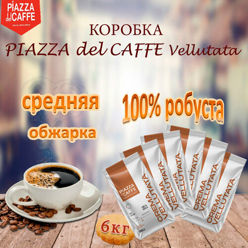 Зерновой кофе PIAZZA DEL CAFFE Crema Vellutata, пакет, 6шт / 6кг