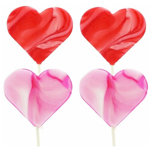 Леденец Пират-Мармелад "Сердце" ассорти: 2 красных со вкусом клубники, 2 розовых со вкусом малины