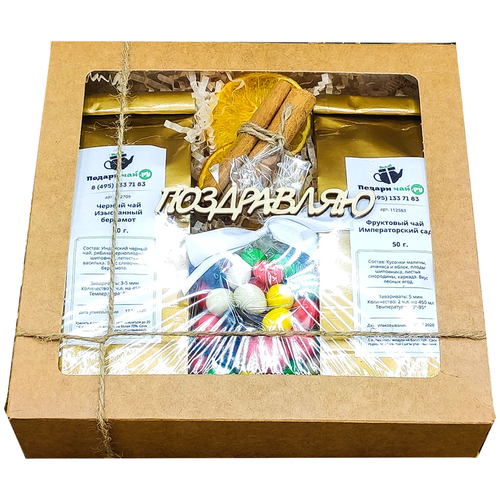 Подарочный набор чая и сладостей, подарок "С праздником №3" (Черный чай)