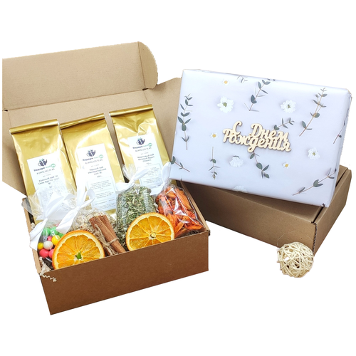 Подарочный набор чая и сладостей, подарок "Радость" (Фруктовый чай, Черный чай)